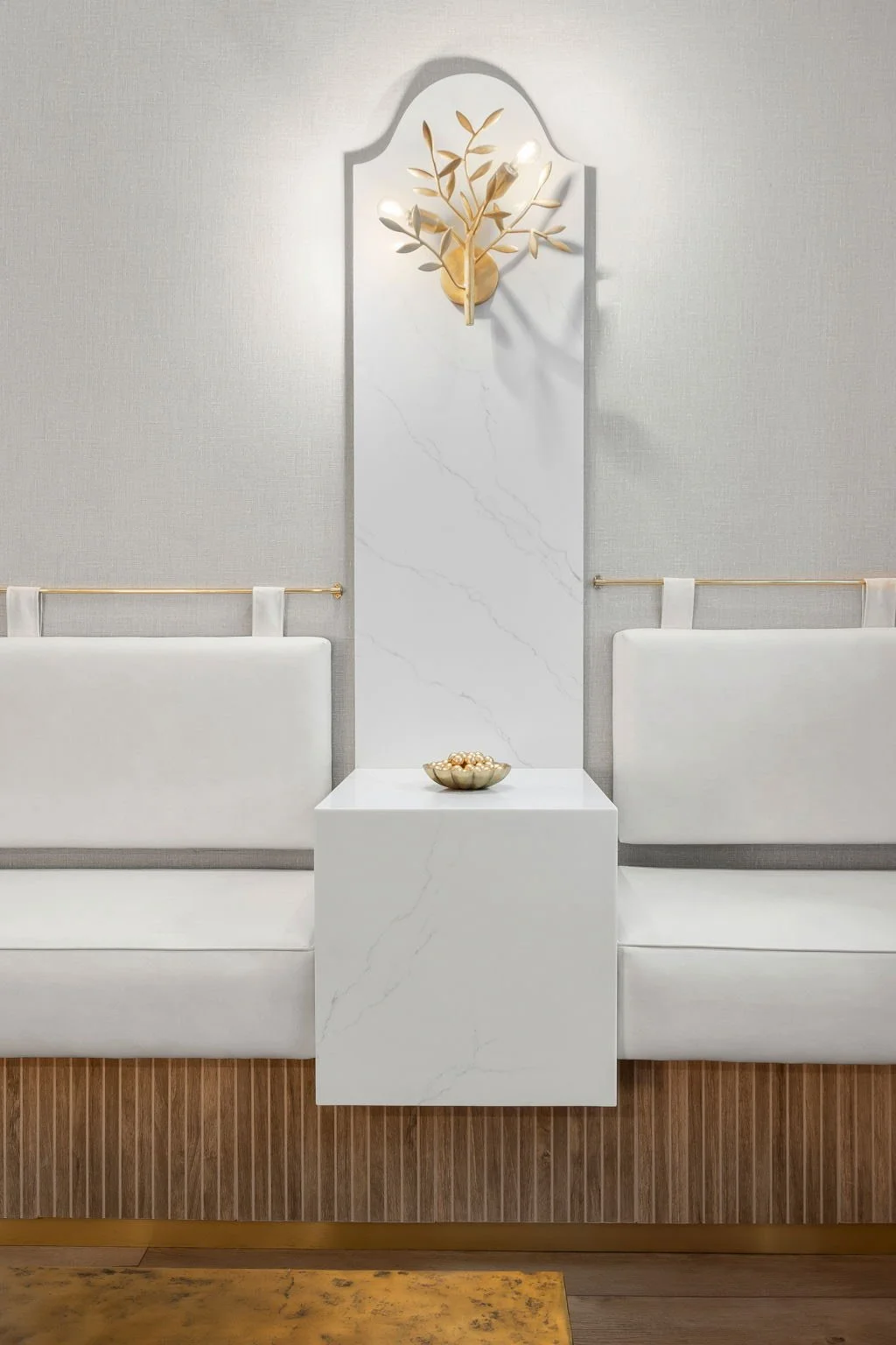 A luxurious, high-end med spa designed to feel like a destination—warm, inviting, and rich with detail. We blended brass, rose quartz, and layered textures to create an atmosphere of refined elegance. Our goal was to transport guests into a serene luxury retreat from the moment they walk through the door.